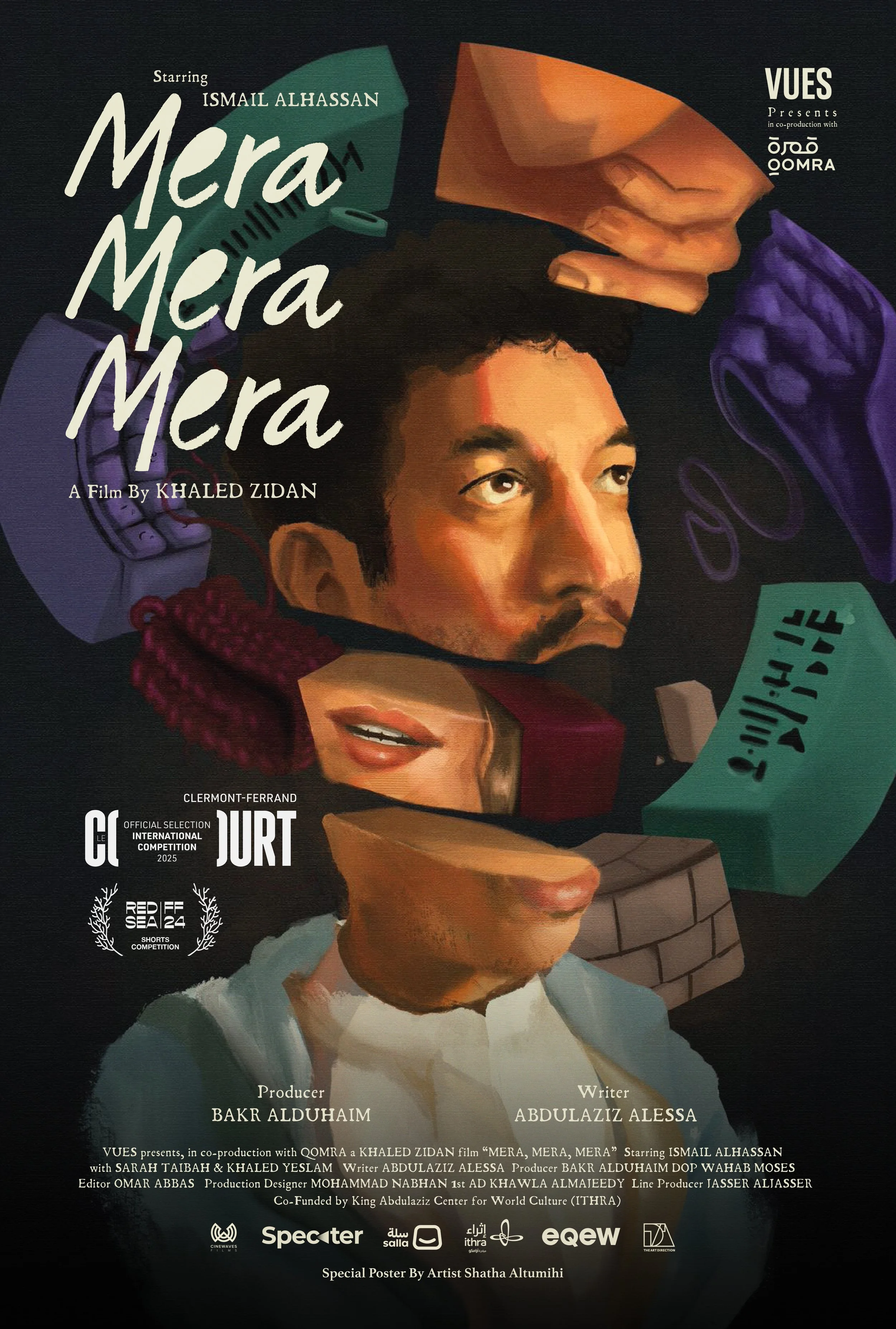 Mera Mera Mera is a fantasy drama short film about Saeed, who wakes up to find that he can only speak one language: Mera Mera Mera. The film has been featured in several festivals, including the Red Sea Festival, and was nominated for the official competition at the Clermont-Ferrand Festival.